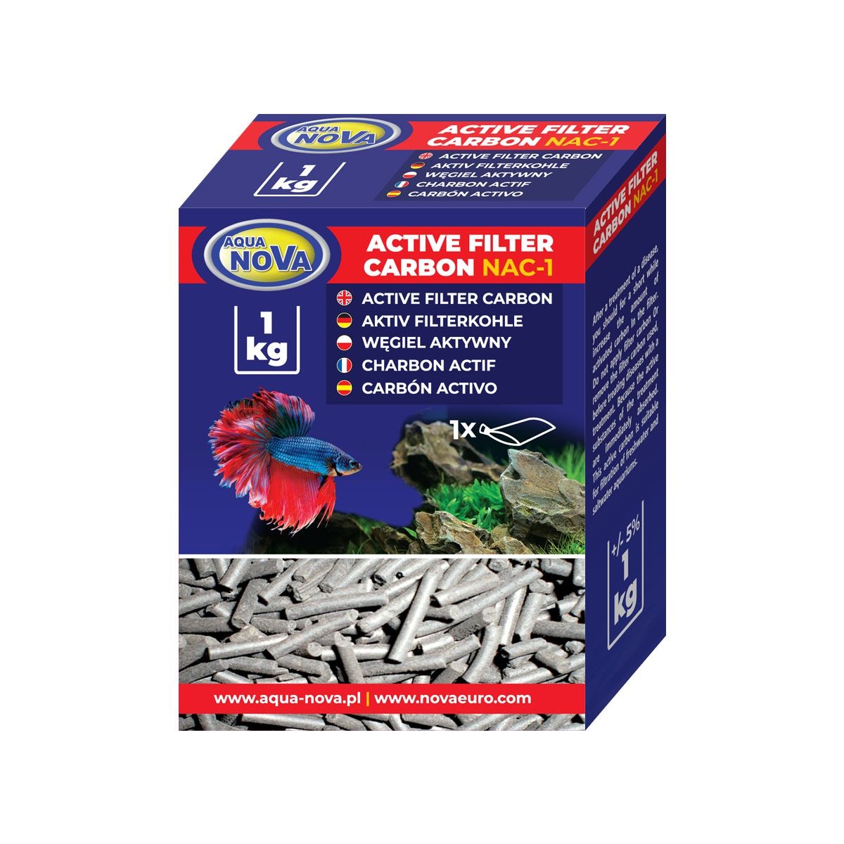 Die Aktivkohle ist in einem versiegelten Plastikbeutel verpackt, um unnötige Verschmutzungen zu vermeiden. Sie wird außerdem in einem feinen schwarzen Aqua Nova Filterbeutel geliefert, wodurch die Verwendung in jedem Filter problemlos möglich ist. Das Netz verfügt über einen Reißverschluss, sodass Sie die Aktivkohlemenge im Netz anpassen können.