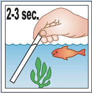 Teststreifen kurz ins Aquarienwasser tauchen, 60 Sekunden warten und die Farbfelder mit der beiliegenden Farbskala vergleichen – fertig!