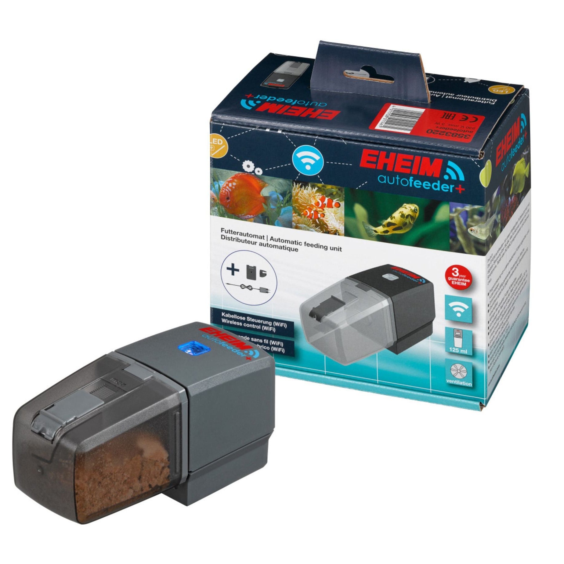 Der EHEIM autofeeder+ hat – anders als der Standard autofeeder – ein Netzteil und wird nicht mit Batterie betrieben. Höchste Sicherheit und Zuverlässigkeit sind selbstverständlich. Sie haben 3 Jahre Garantie.