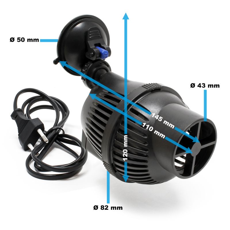 Der Rotor der Aquarium Strömungspumpe wurde einer Schiffsschraube nachempfunden und erzeugt dadurch eine gleichmäßige und breite Strömung. Durch die konstante Strömung setzen sich außerdem weniger Sedimente am Boden des Aquariums ab.